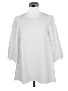 袖レースチュニックブラウス ・パンチングレースのお袖が女性らしいチュニックブラウス☆
