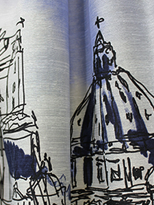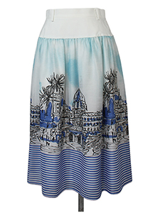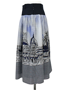 ボーダー入り風景柄スカート ・軽く薄い素材感のボーダー入りの風景画柄スカート☆