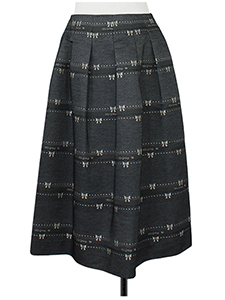 横段リボン柄スカート ・横段のリボンとロゴジャガードがおしゃれなボックスフレアスカート☆