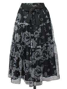 花柄ティアードスカート ・上品な透け感で仕上げたオーガンジー素材の花柄ティアードスカート☆