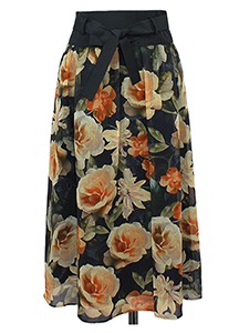 シフォンフラワーPtスカート ・シフォン素材に大胆なお花をプリントした大人の女性らしさあるスカート☆