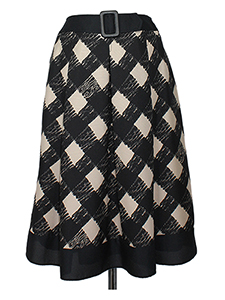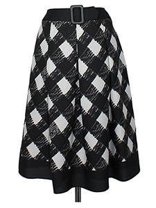 バイヤスチェックタックスカート ・ウェストのベルトで甘さを抑えたチェックの中にロゴが飛んだスカート☆