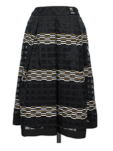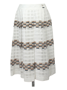 格子シアー横段スカート ・ウエスト部分のロゴ刺しゅうがポイントの格子シアースカート☆