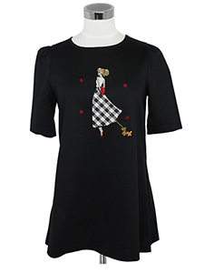 レディーチュニックカットソー ・ディテールにこだわった女の子と犬のシリーズのチュニックカットソー☆