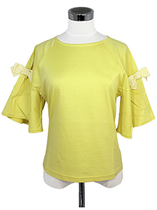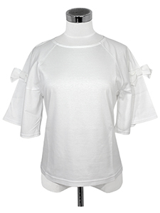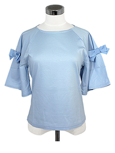 袖フレアリボンカットソー ・袖フレアが可愛いグログランリボン付きの半袖カットソー☆