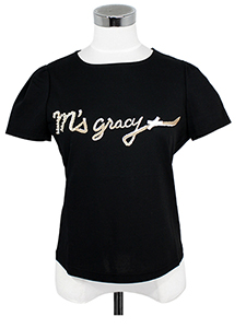 【M'S GRACY】 パール付きロゴカットソー |