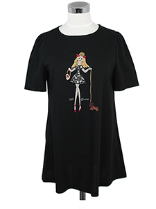 お散歩チュニックカットソー ・女の子と犬のシリーズのコットンチュニックカットソー☆